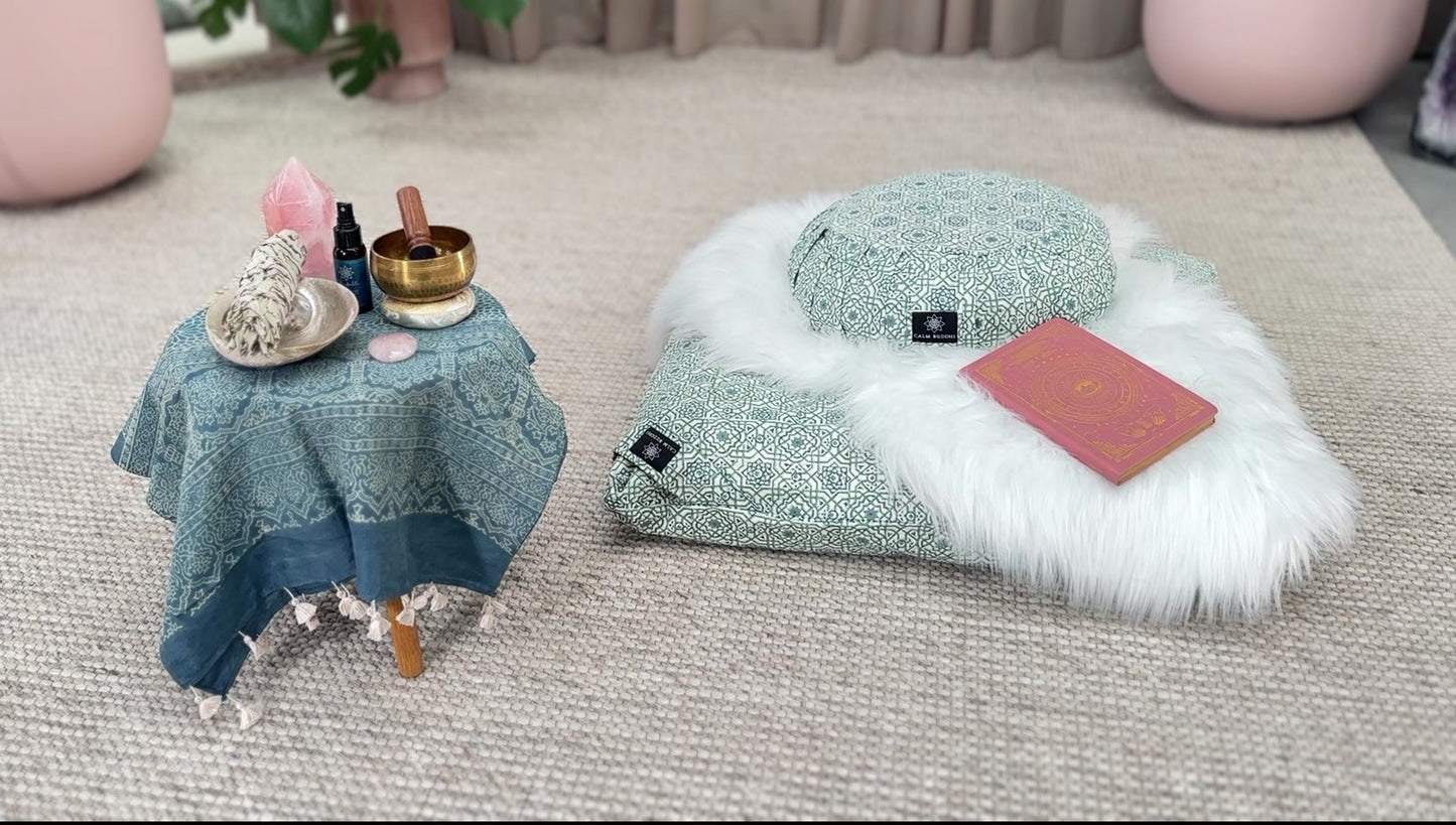 An altar is an elevated space designated as a sacred area where you can engage in spiritual practices and find a deep sense of connection. This can be a beautiful reminder to remain dedicated to a regular practice.