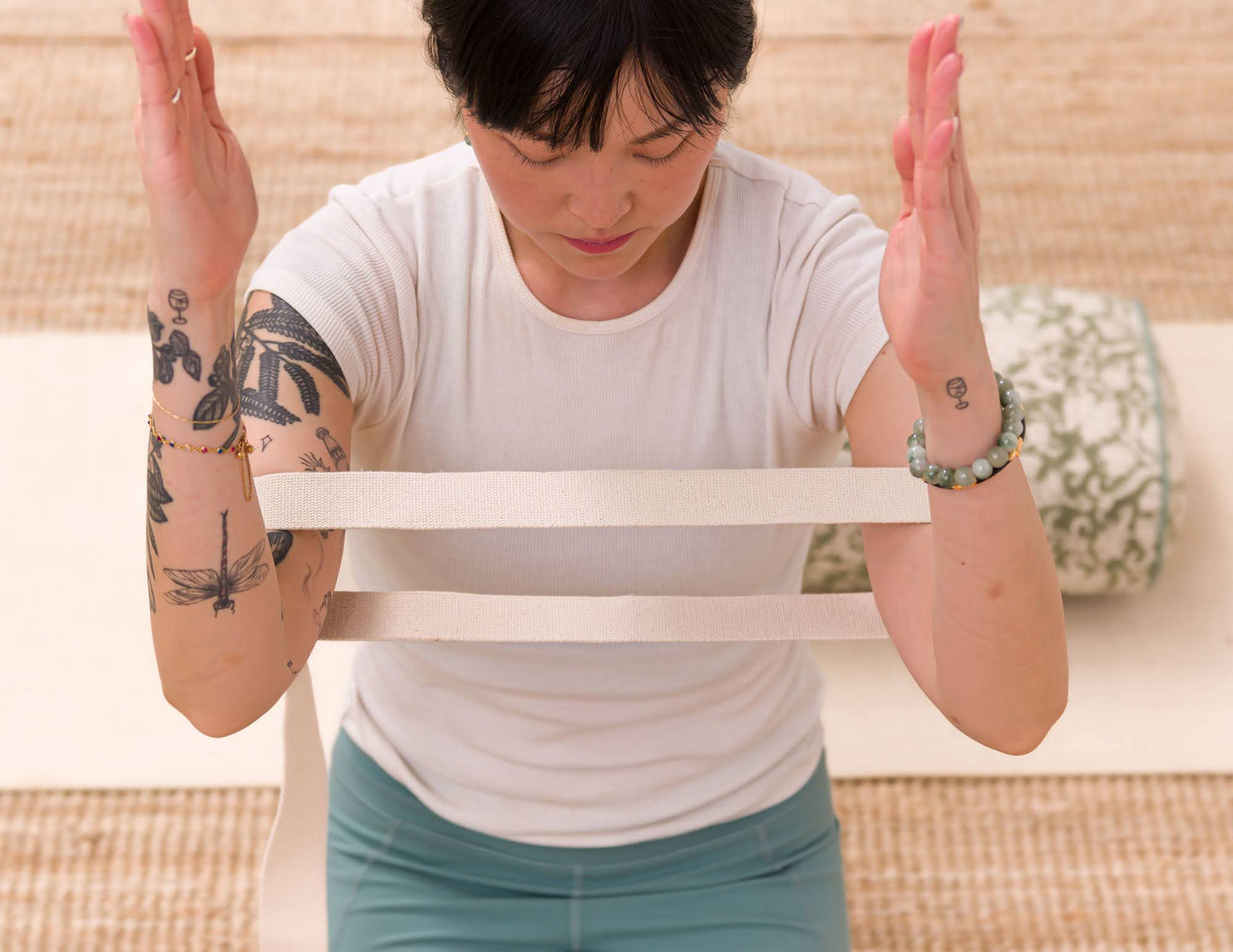 Props Required: 2 × Yoga Blocks, 1 × Strap