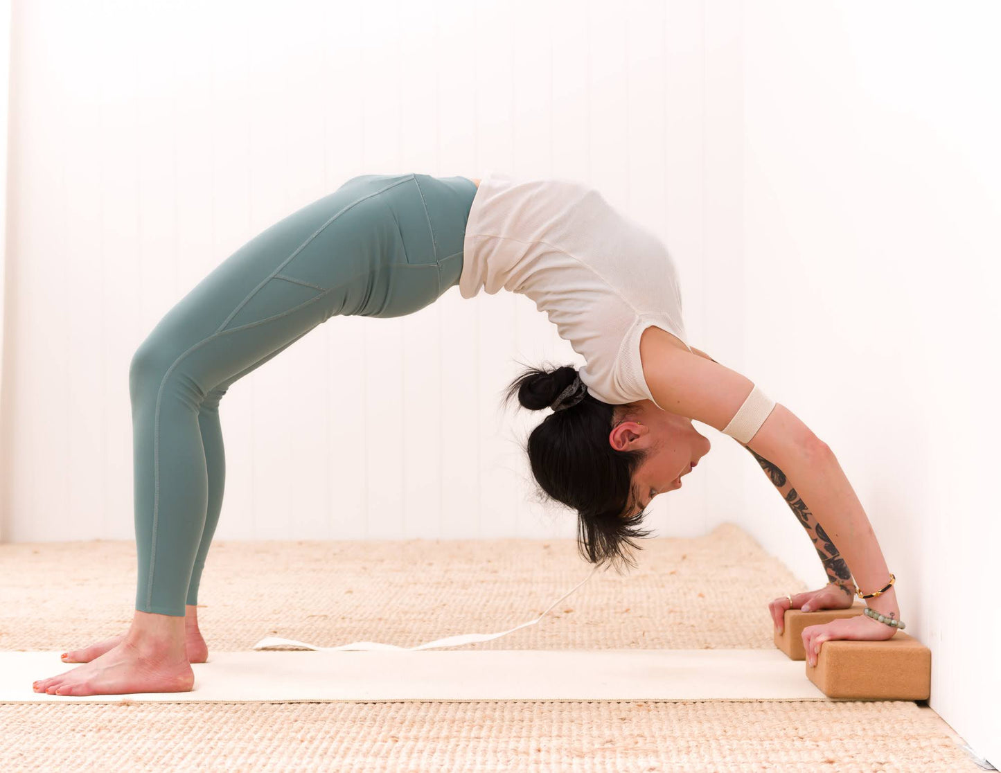 In the following tutorial, Elly will guide you through step-by-step instructions on how to approach Urdhva Dhanurasana using various yoga props.