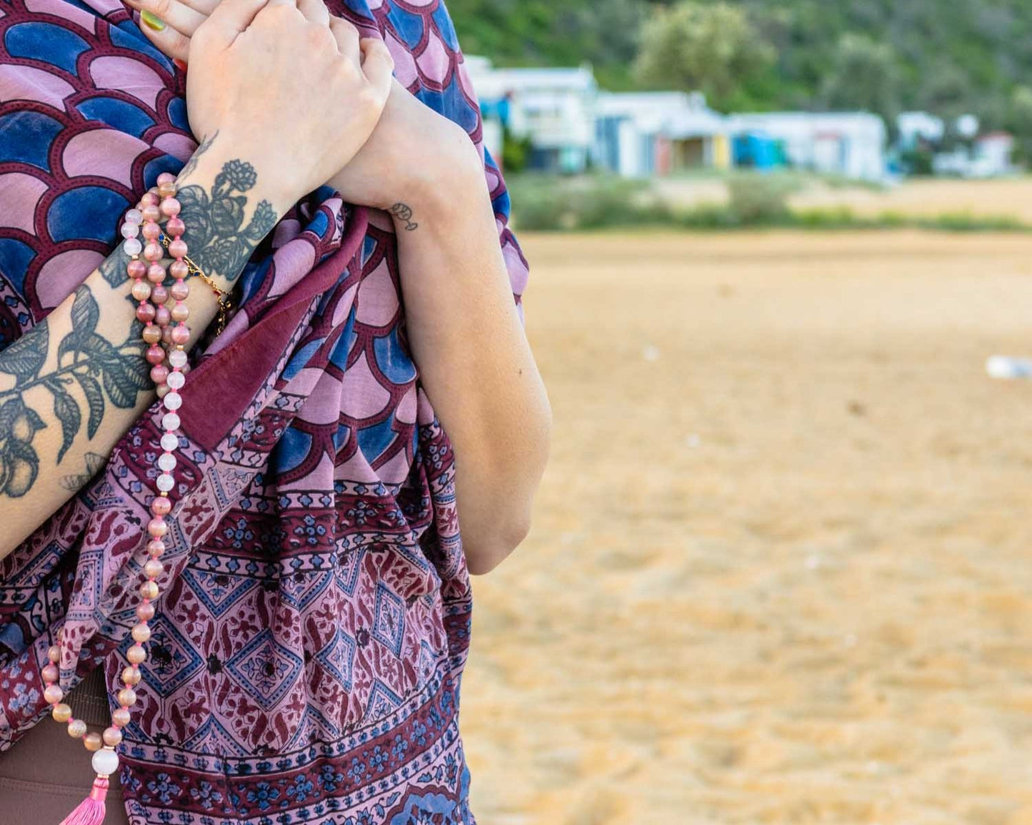- Overcoming a busy mind with the slow rhythmic movements through the mala beads and attention to your mantra