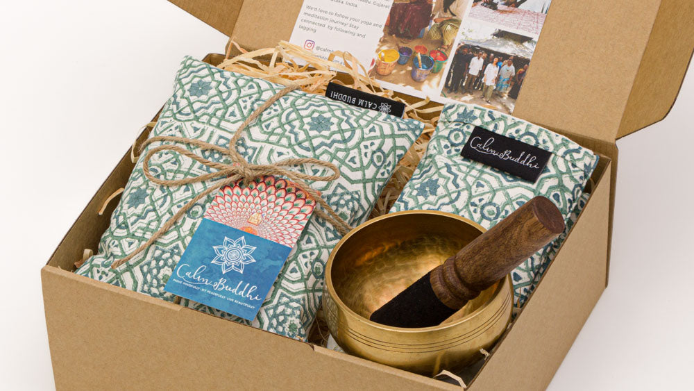 Did you know you can take these heat packs home individually or in a warming gift pack? They’re paired with an eye pillow and a small singing bowl for the perfect winter retreat at home.
