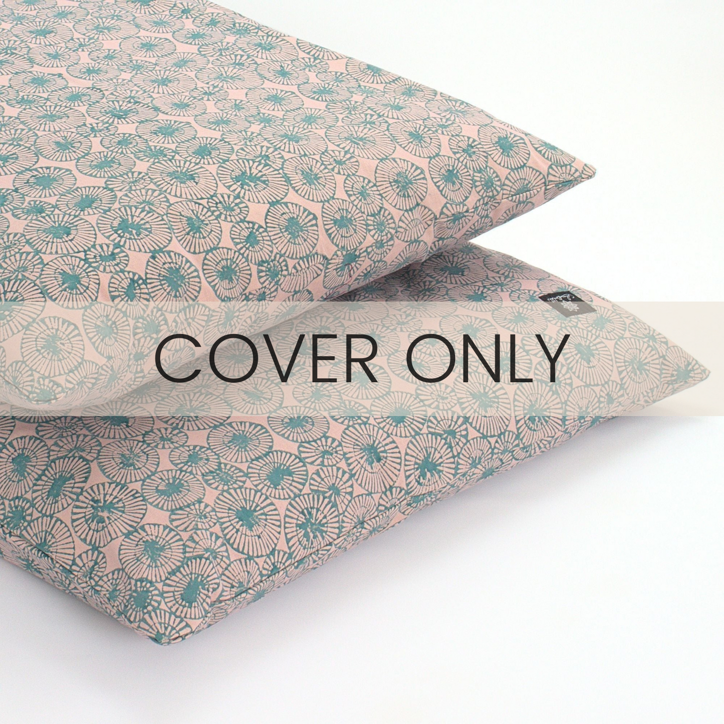 | · Hand block printed with global organic standard dyes in Karnataka India · Cover made from 100% cotton · Removable, washable cover |