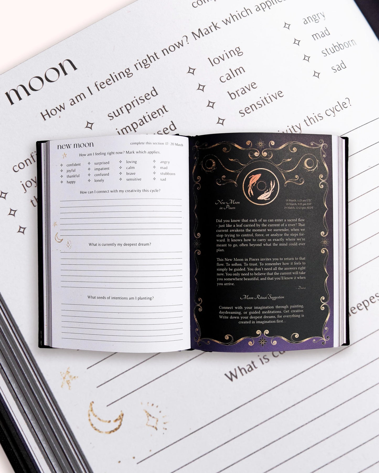 A diary with a focus on mindfulness, astrology, gratitude, intention setting, self reflection, creativity and personal growth.