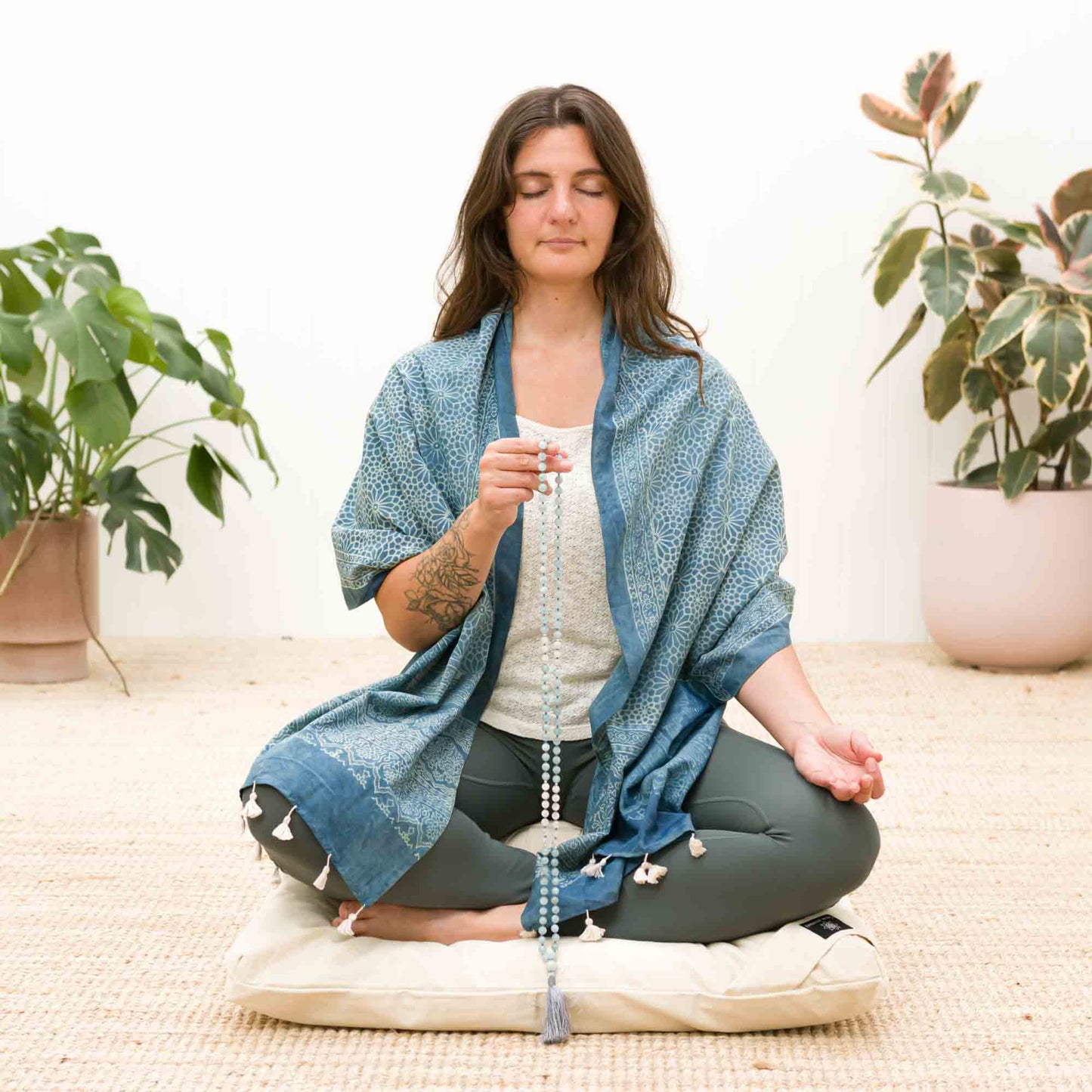 Our cotton silk scarves are perfect for meditation to cover the crown and shoulders.