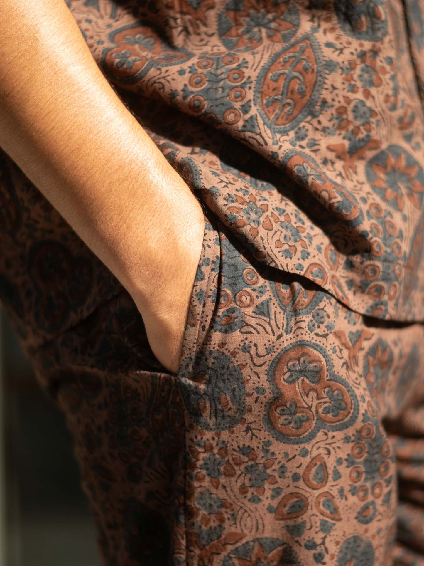 Hand block printed and crafted from 100% cotton and natural dyes, this pant is breathable, super soft, and ready to be your go-to for lazy evenings, cozy mornings, and everything in between