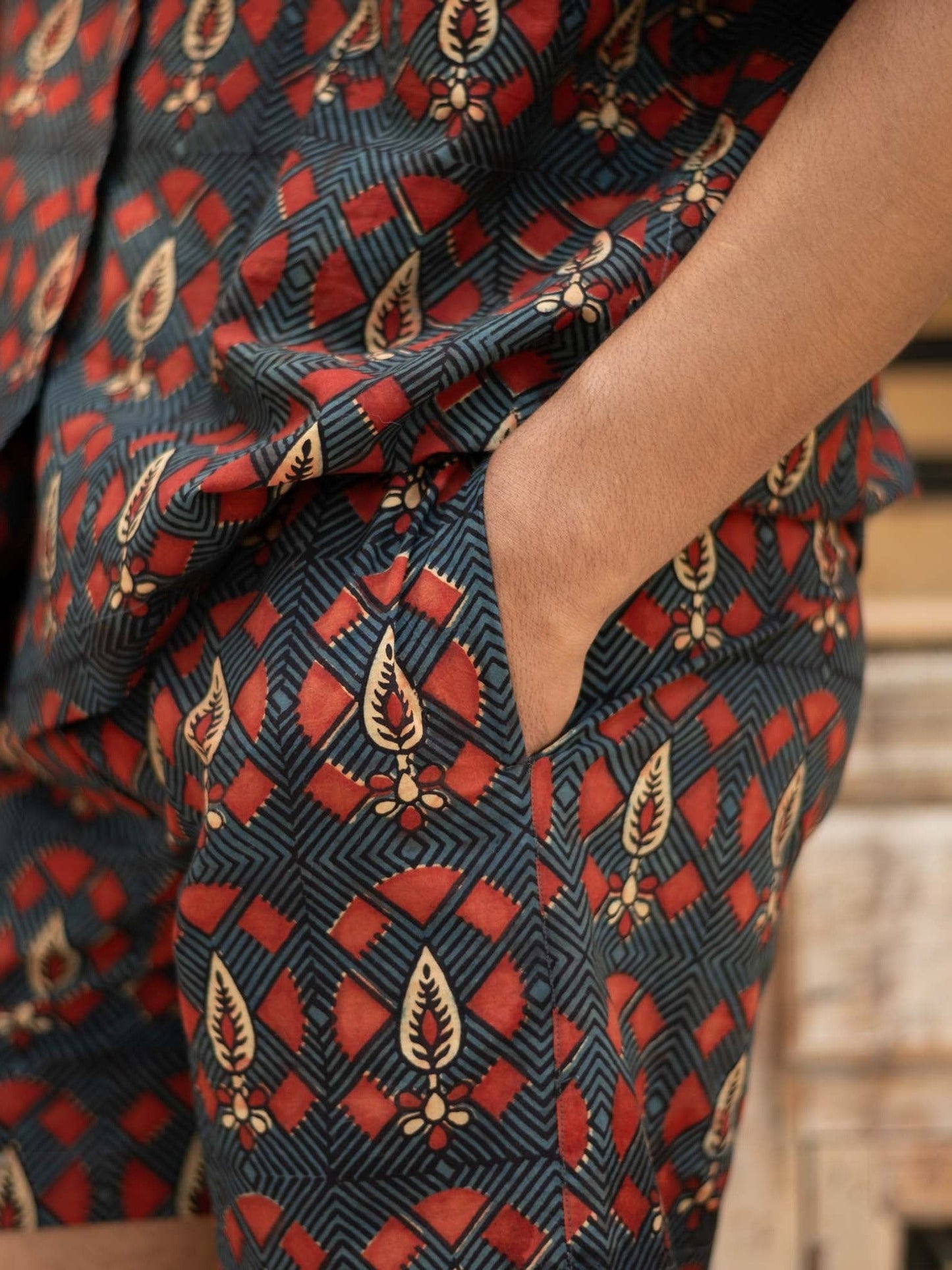 Easily transition this gorgeous hand block-printed unisex short from sleep to loungewear and even daywear to turn heads and demand attention.