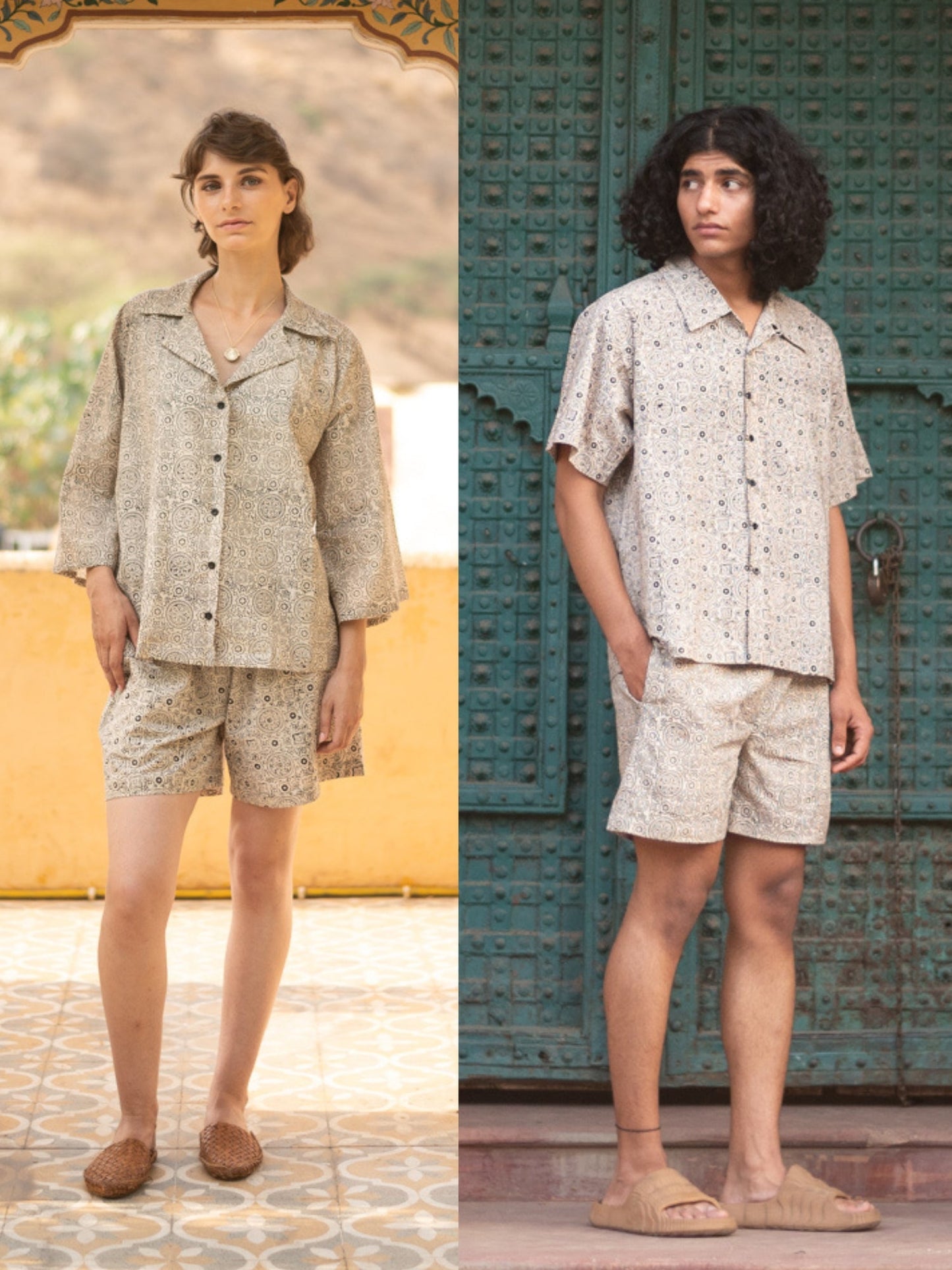 Hand block printed and crafted from 100% cotton and natural dyes, this set is breathable, super soft, and ready to be your go-to for lazy evenings, cozy mornings, and everything in between