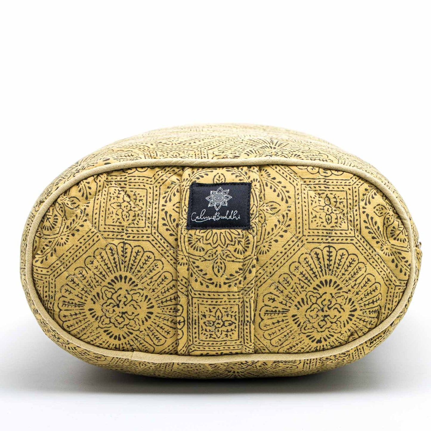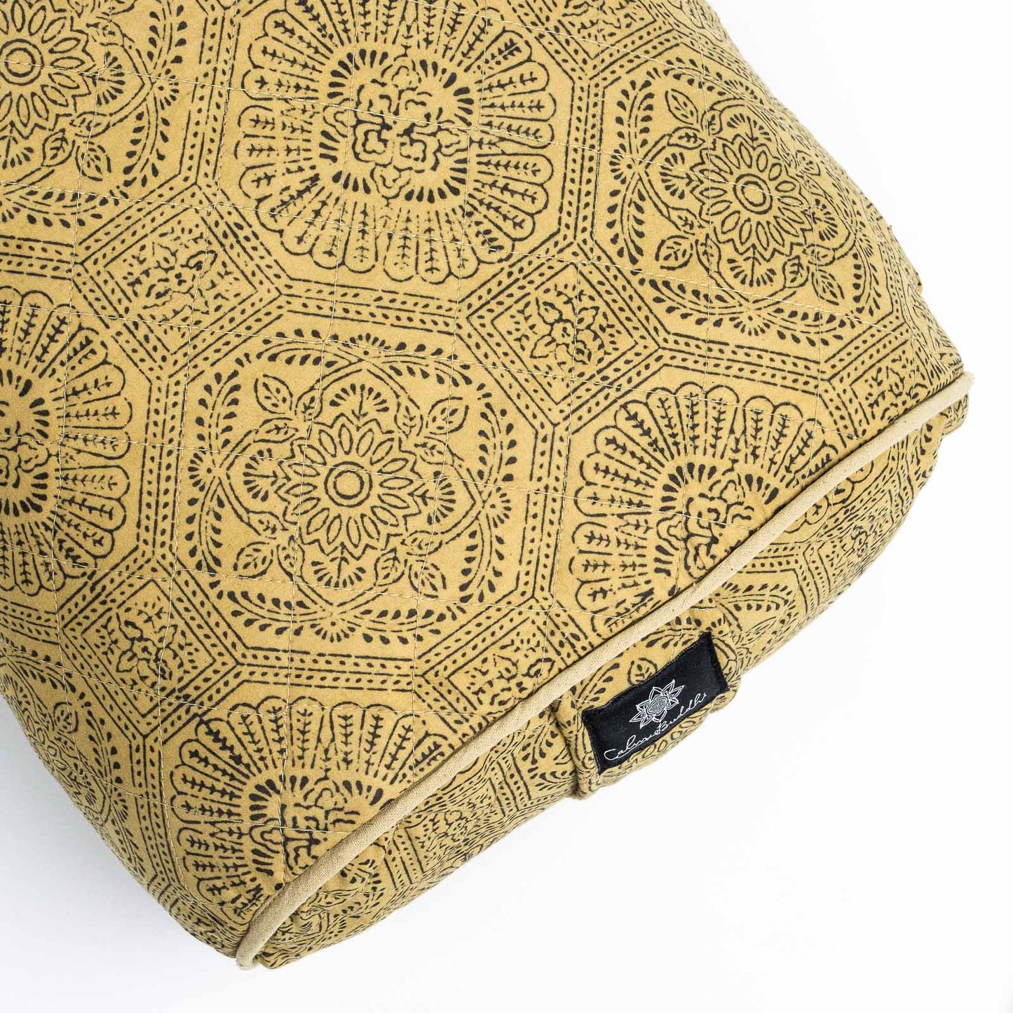 Oval Yoga Bolster- Mustard Flower Block Printed, Oval Bolsters -xo