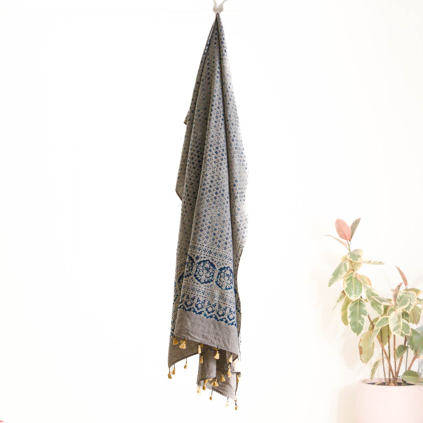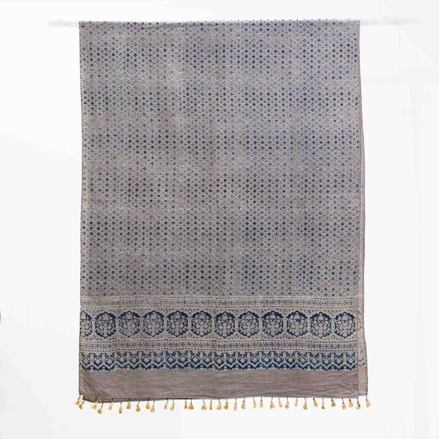 Ajrakh Indigo Mist ~ Wool Natural Dye Shawl