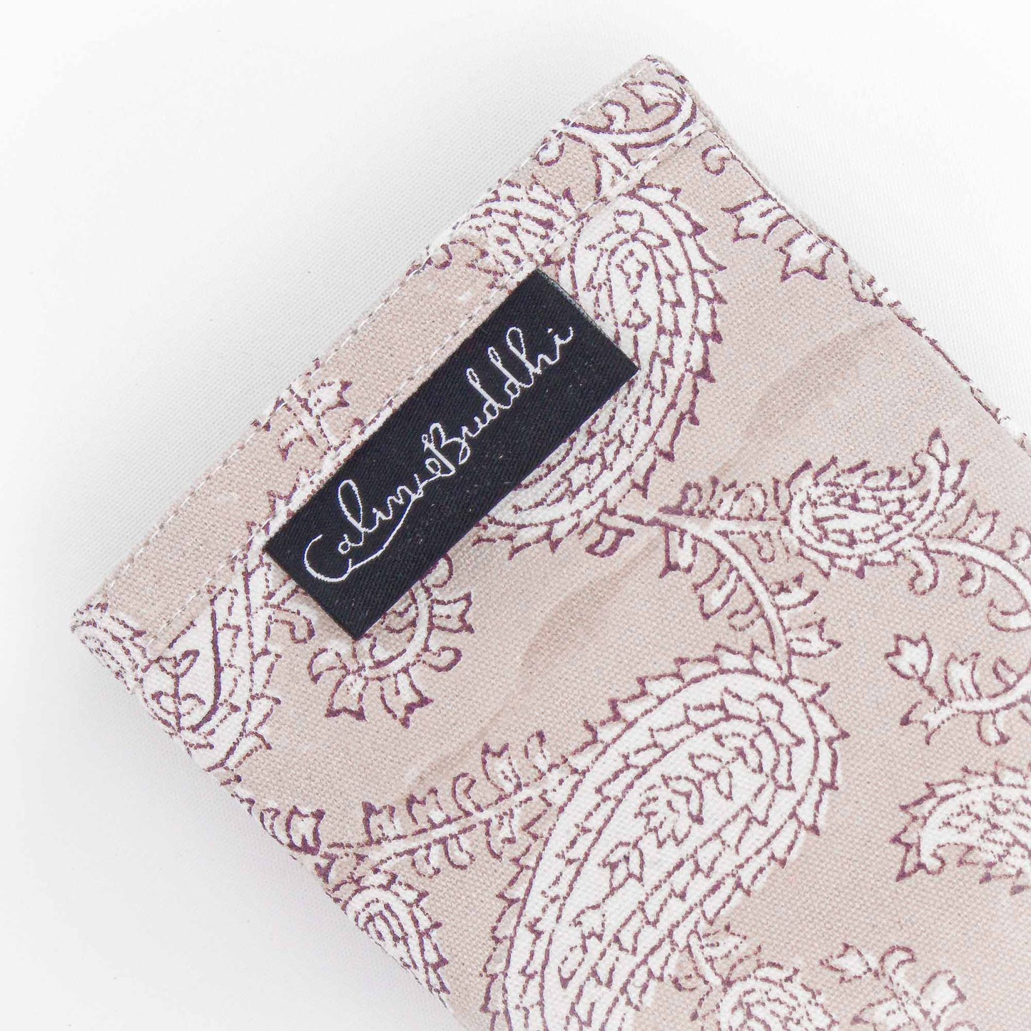 Due to the lighter colour of Jyoti Paisley, imperfections are more easily seen. At times you can obviously see more hand block print lines and also where more dye has been applied to one side of the block. These items are still beautiful and tell the story of the many hand prints required to complete the design.