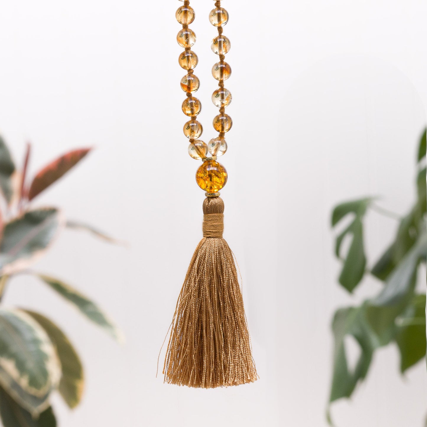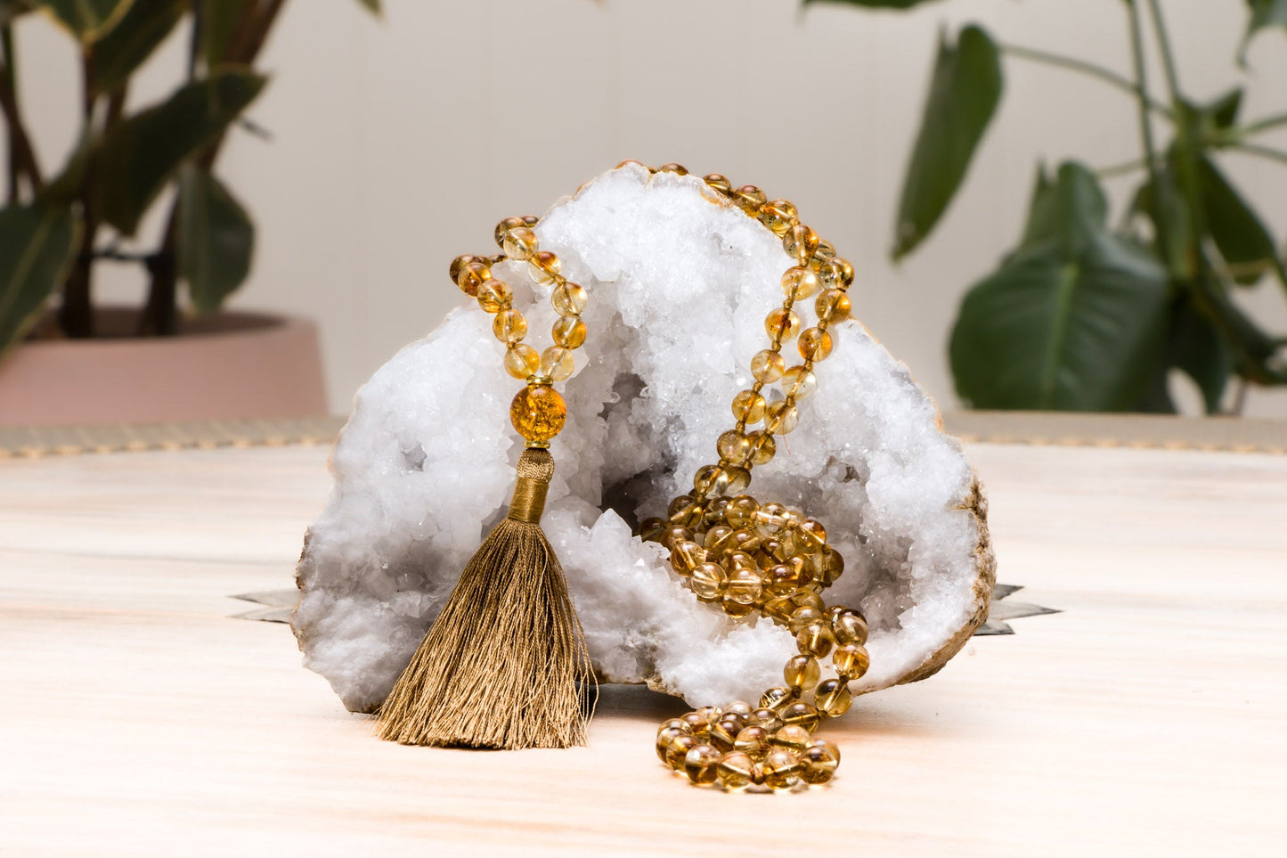 This CITRINE meditation mala was created to stoke the fire of the solar plexus (Manipura) and put the power behind your dreams so they may manifest into reality.