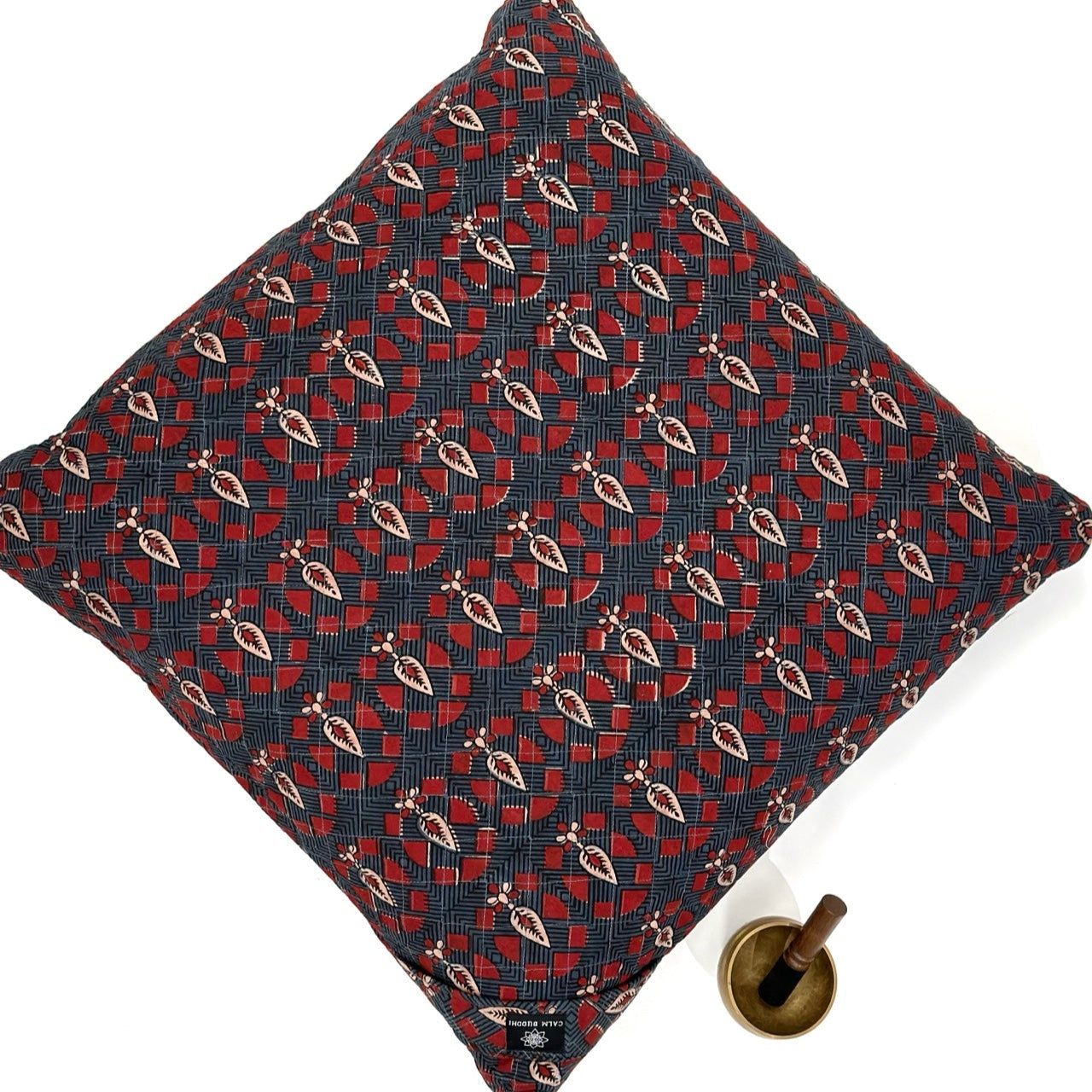 The bold repeat of the spear/arrow motif is traditional for Godia Lohar, iron workers are known for their fierce defense of their identity and are very skilled makers of the bhala spear. Our highly skilled artisan printers use 3 hand-carved blocks across multiple layers to create the intricate details in this stunning design.
