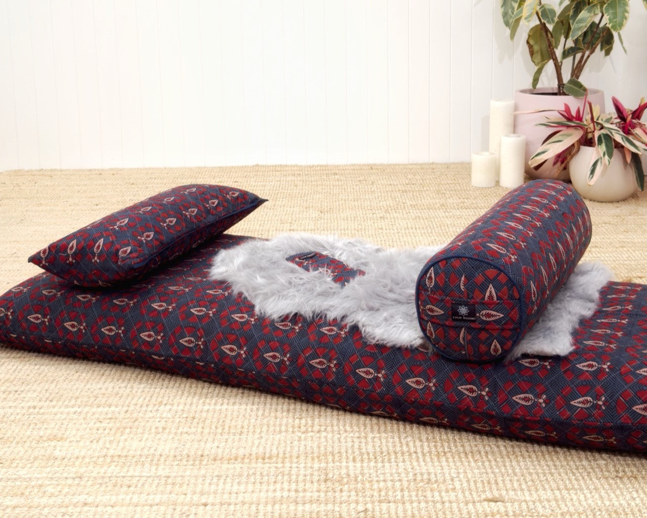 Yoga bolsters assist with yoga poses and yoga asanas providing greater comfort and support. Banjari bolsters come in round, oval and pillow, perfect for studio, home practice or travelling.