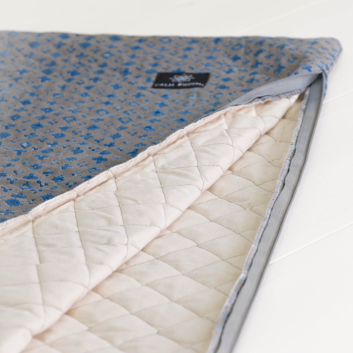 Discover Indigo Mist, our new limited edition collection of handcrafted Ajrakh quilts and textiles. Each piece is made using traditional block printing techniques from Gujarat, India, where skilled artisans carve and layer three wooden blocks to create intricate, timeless designs.