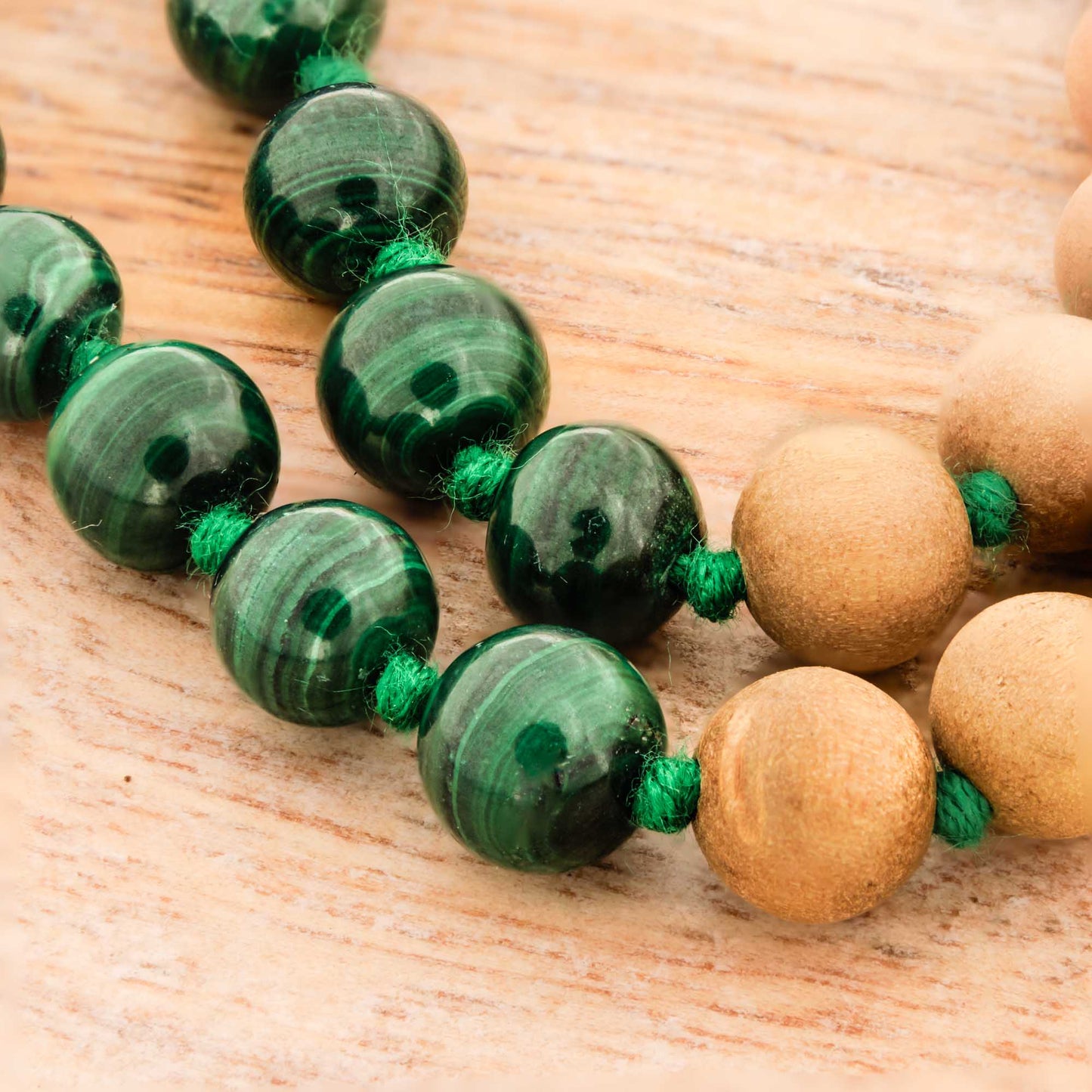 MALACHITE and SANDALWOOD Meditation mala