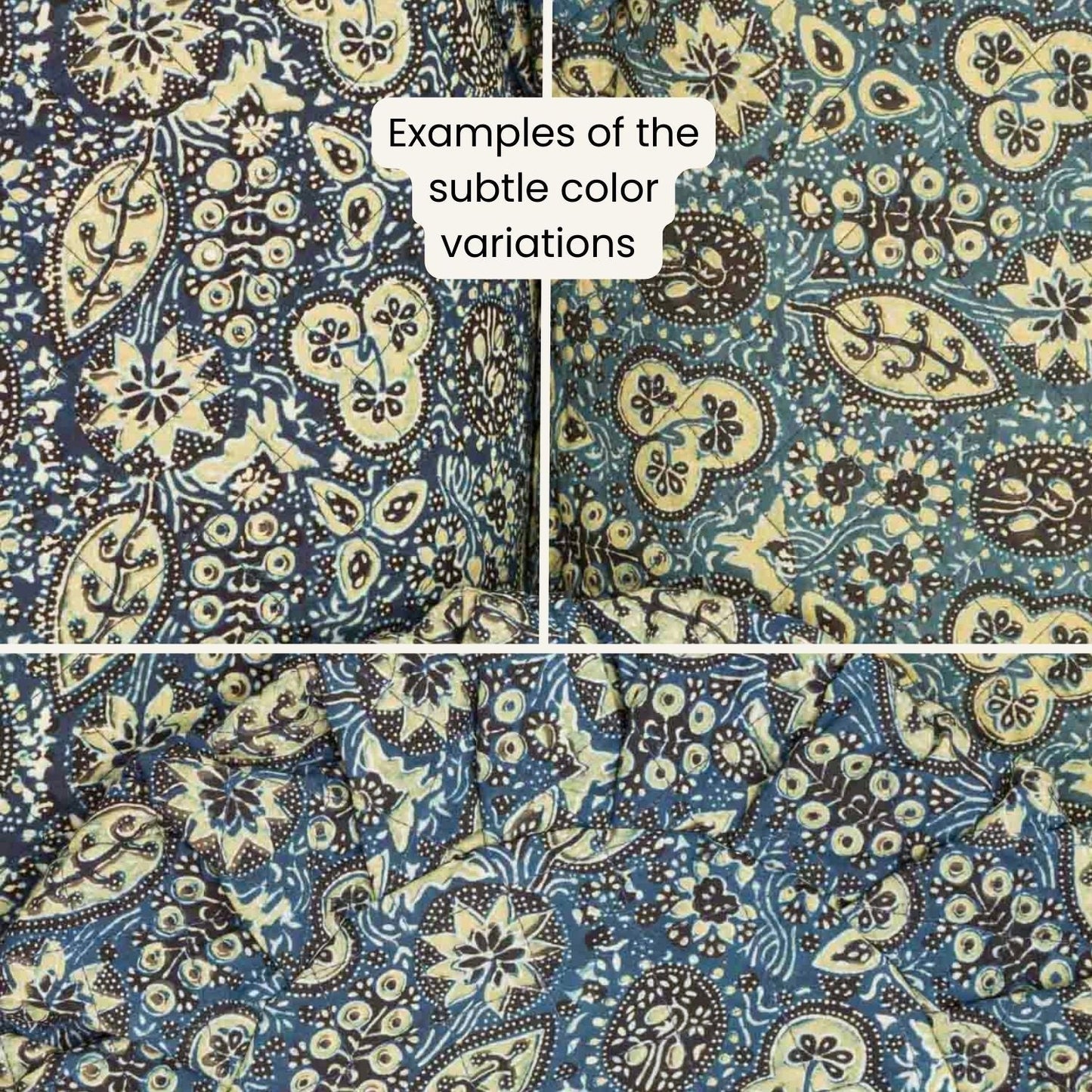 Round Meditation Cushion - Ajrakh Fig Leaf Blue